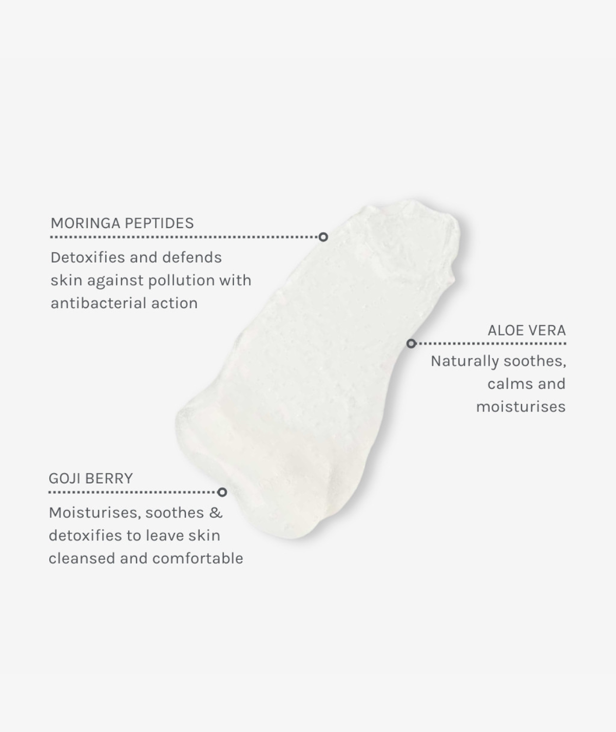 A delicately foaming facial wash to detoxify and rebalance normal to combination skin. Natural sugars cleanse away impurities and Organic Aloe Vera softens, leaving skin clean, smooth and supple. Natural Goji Berry extract and Moringa Peptides defend against pollution. Fragranced with fresh natural aloe vera fragrance.