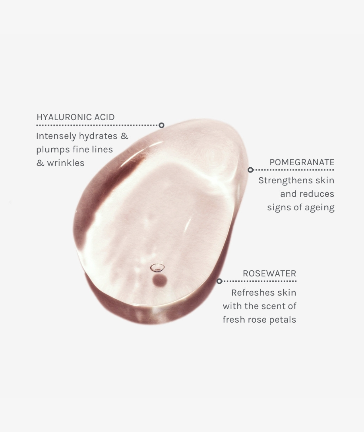 Our multiple award-winning natural Hyaluronic Acid serum helps to hydrate your skin, and plump fine lines and wrinkles. By using 200mg of concentrated low molecular weight Hyaluronic Acid per bottle, this certified COSMOS Organic face and neck serum is designed to lock in moisture, helping skin to look glowing and feel naturally hydrated all day. Our fast absorbing serum also includes Organic Pomegranate extract to aid cellular turnover, and the delicate, gentle fragrance of Organic Rosewater.