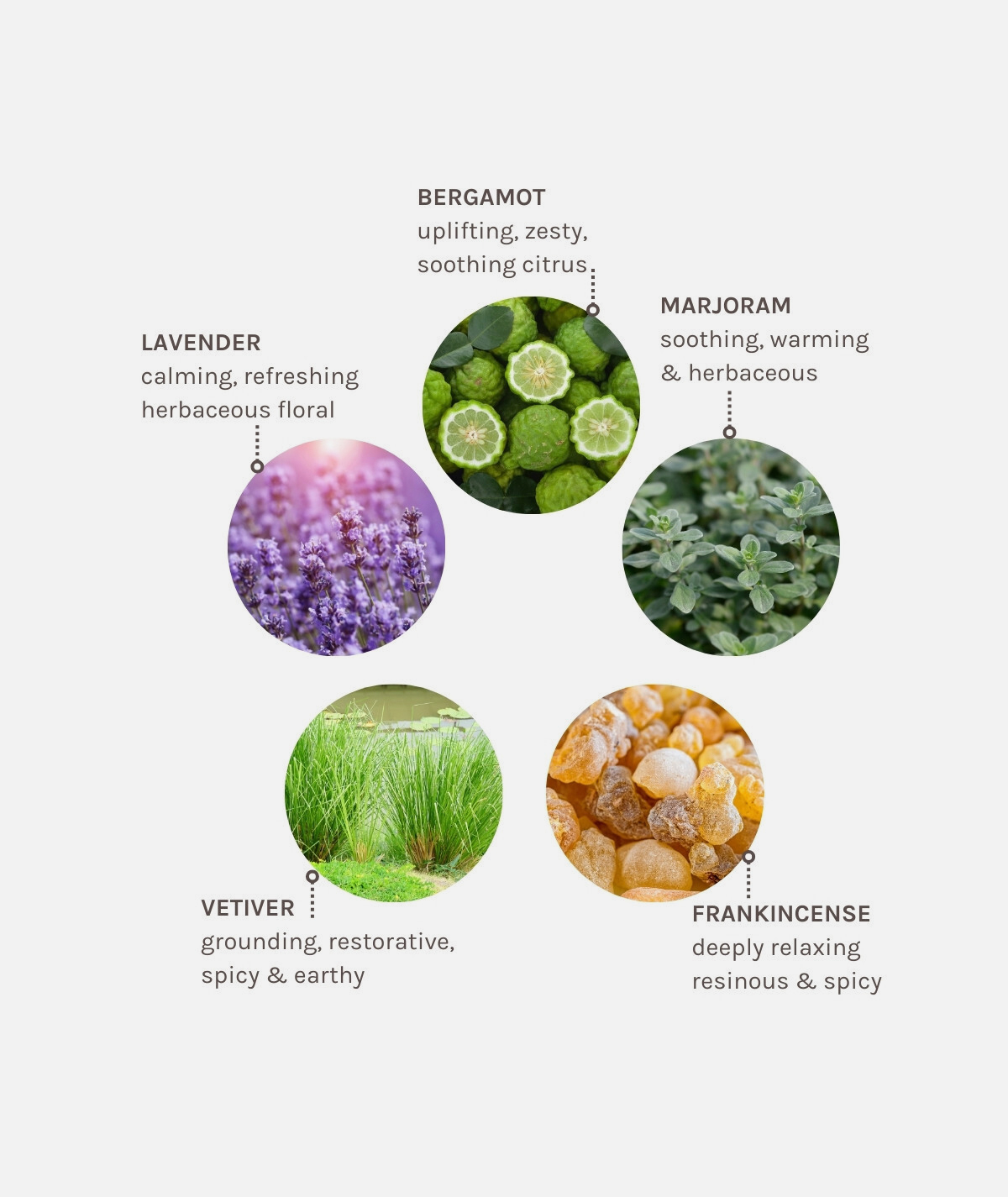 Crafted with a serene synergy of essential oils, Zen Whisper is designed to soothe the senses and gently guide the body into a more restful, parasympathetic state. Lavender and Sweet Marjoram relax the nervous system, easing tension and inviting stillness. Frankincense encourages deep, mindful breathing, while Vetiver and Bergamot offer grounding support, helping you feel clear, anchored and emotionally centred.